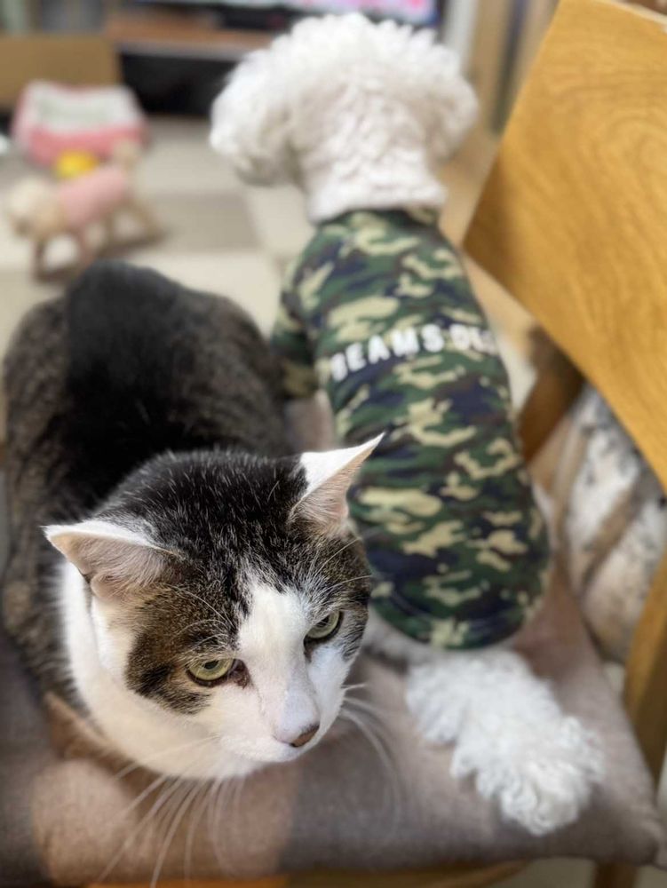 ワン🐶ちゃんと猫🐱ちゃん仲良しなんですねー😲