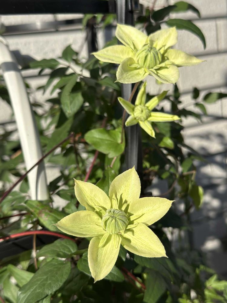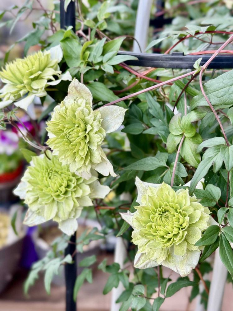 クレマチ フォンドメモリーズも沢山蕾あるけどもう寒くて咲けないから✂️して室内に飾りました🪴
