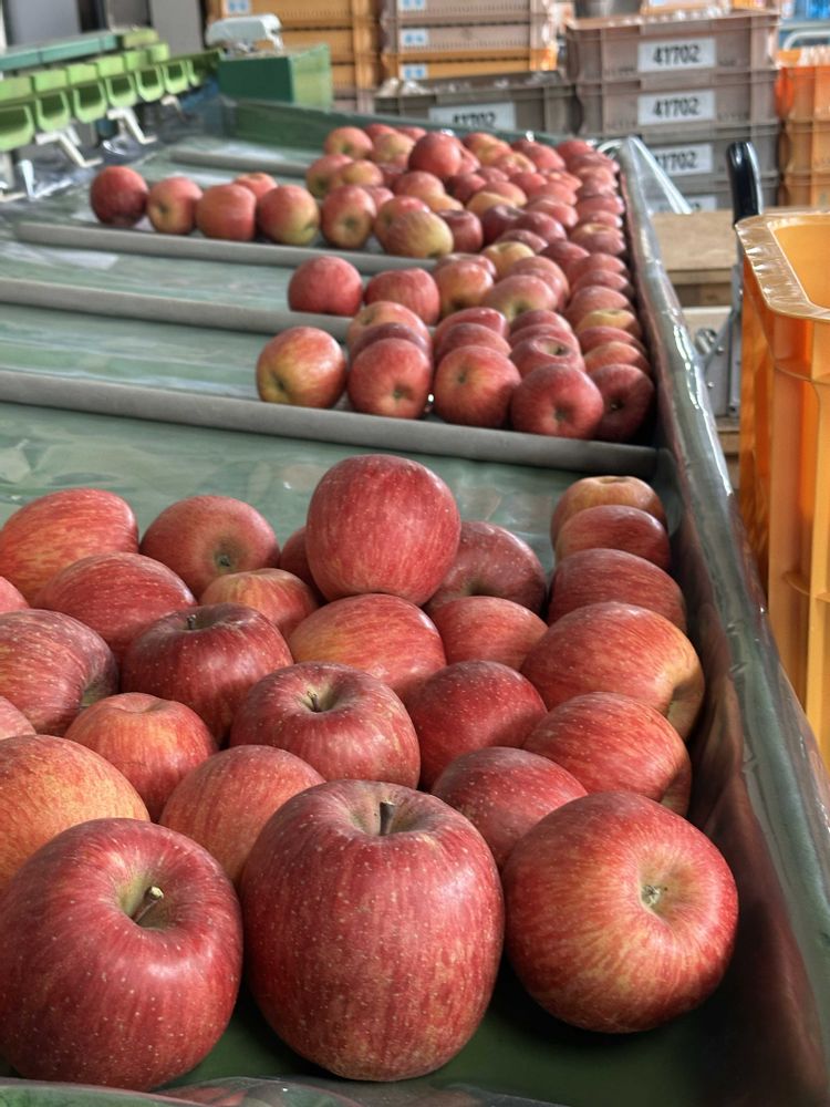 作業所には朝早く収穫したりんご🍎サンふじが山積みされ甘酸っぱい香りでいっぱい!