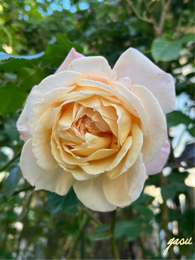②我が家で1番よく咲くのでよく登場のGDルイーズ。ボリュームあり過ぎずアプリコットにほんのりピンクがのった1番好きな感じ🥰