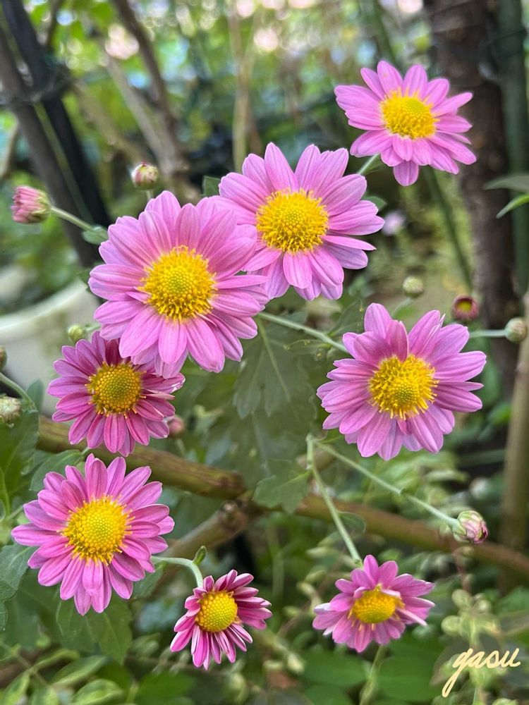⑤枝葉は茂ってるけど足元の寂しいアンジェラ🌹の下部を隠すように小菊が倒れて咲いてました💕 ここなら陽が入るのでしょうね🤭