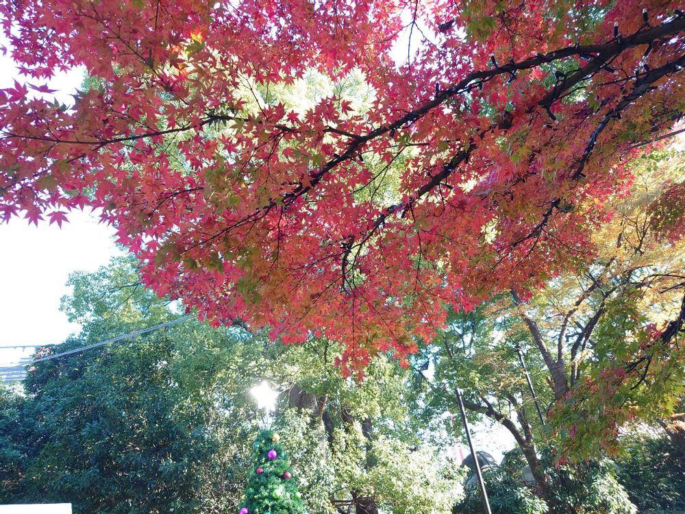 上野は結構紅葉が進んでて綺麗に色付いた木々が素敵だった。クリスマスマーケットもやってたから、サンタさんとモミジの組み合わせがなんだか不思議な感じ。