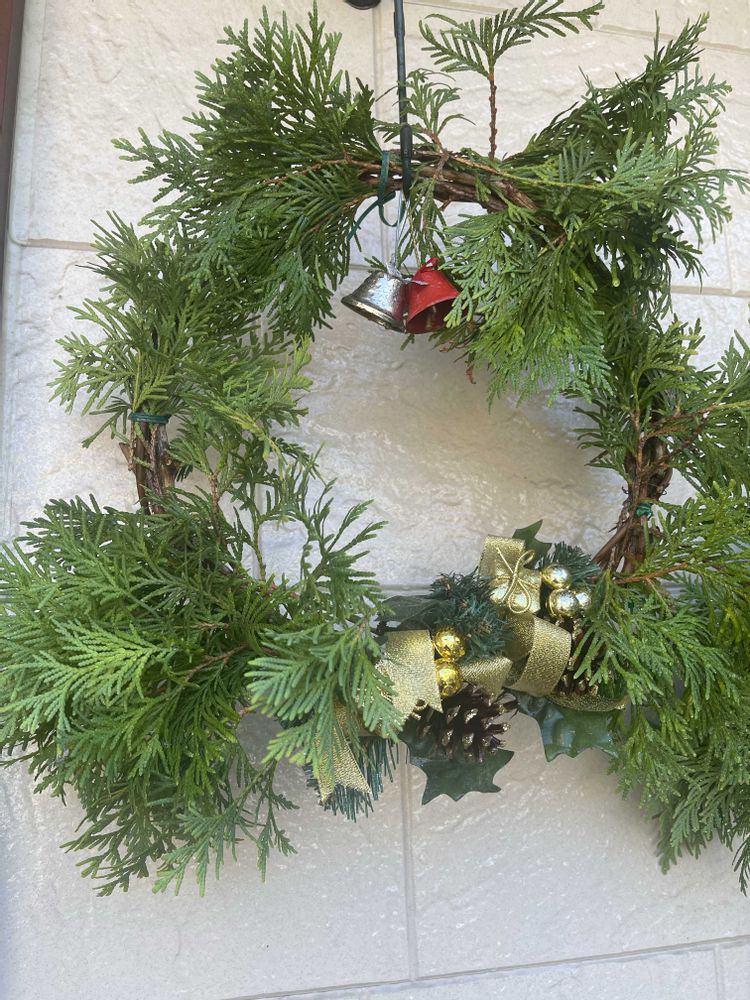 うちの匂いヒバでリースを作ってみました🙏🙇♂️😊🙆♂️土台はぶどうのツルです(今はぶどうの木はありません 虫にやられて数年前に切り倒しました😓😭)