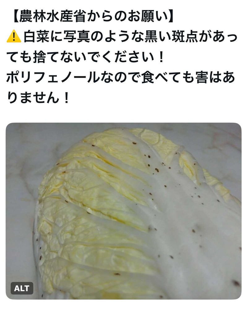 白菜の黒ポチは虫の卵かもとか思って取り除いていたので勿体無いことをしてました😅