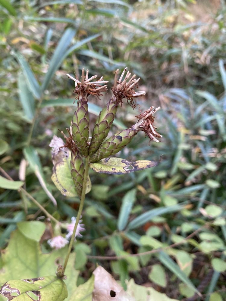 最近まで倒木があったせいで入れなかった森へ久しぶりに行ってみたら、花が終わってしまった「カシワバハグマ」に出会った。