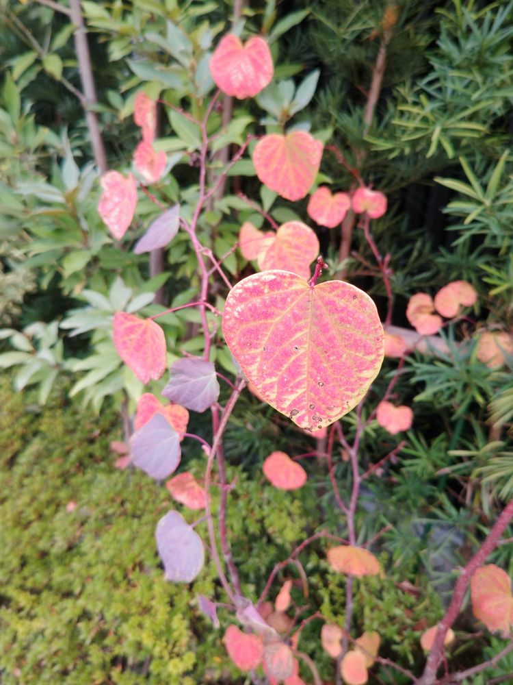 丸いハート型の葉と美しい秋の紅葉で庭木としても人気があり