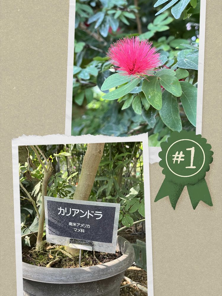 4️⃣ カリアンドラ🌸 こちらも温室内で可愛らしく咲いていました😆👍🌸🌸💕 ネムのお花に似ていますね🌸💕✨🥰