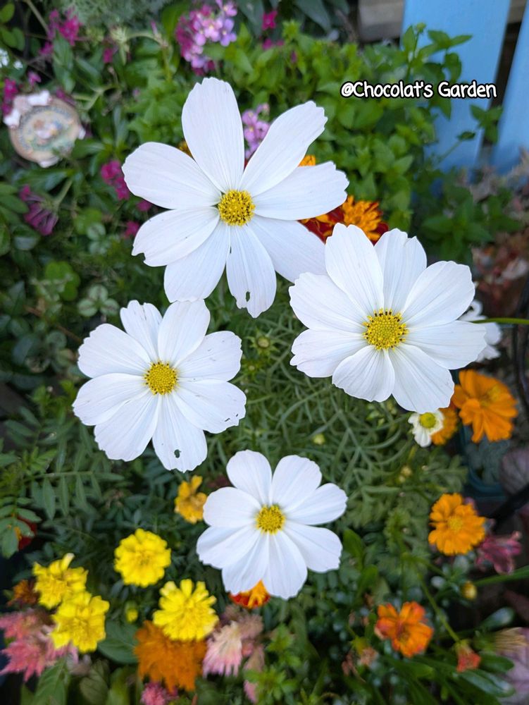 マリーゴールドも頑張る中でのホワイトコスモス♪映えますね🤍