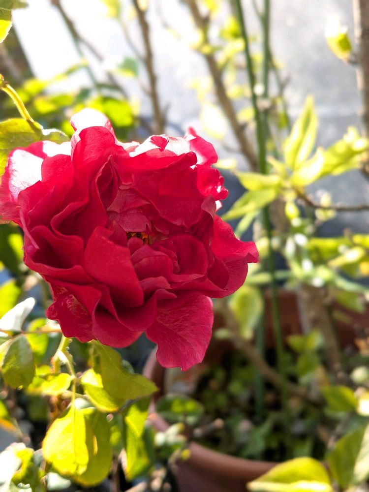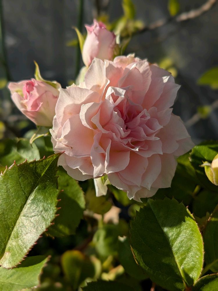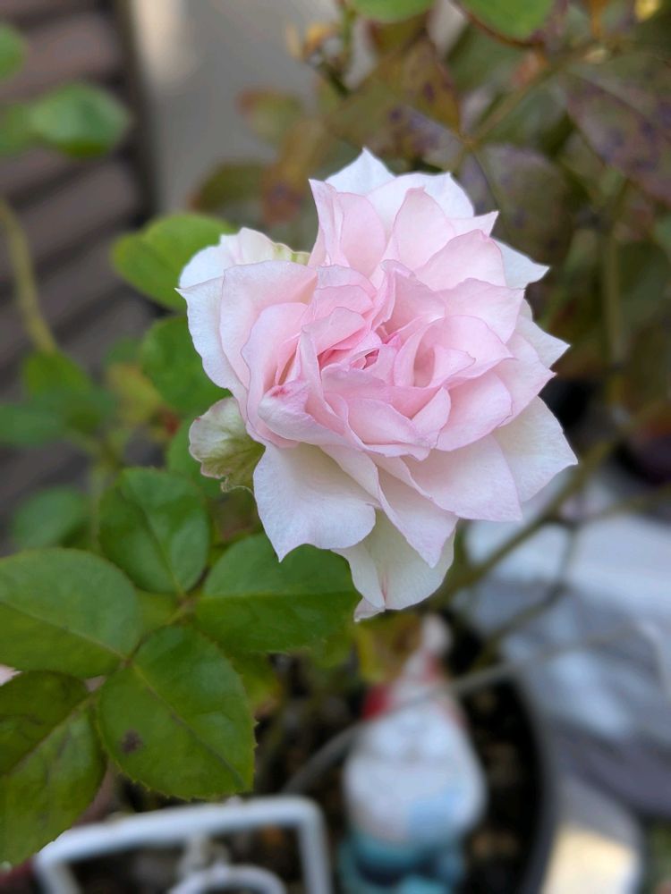 ベルちゃん🌈🐩🌹も〜淡い🩷に赤いミニバラ🌹満開に