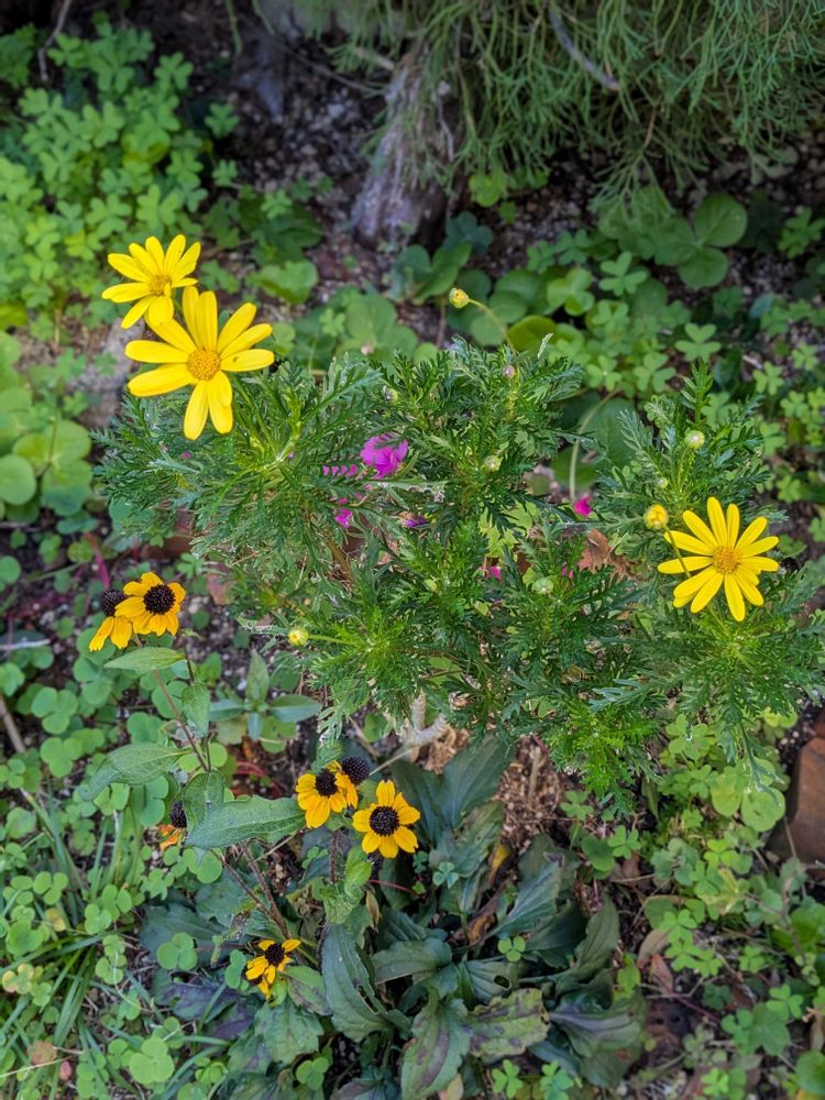 黄色い花ユリオプスデージ、ルドベキアタカオも咲いているね👍😃🎶⤴️⤴️