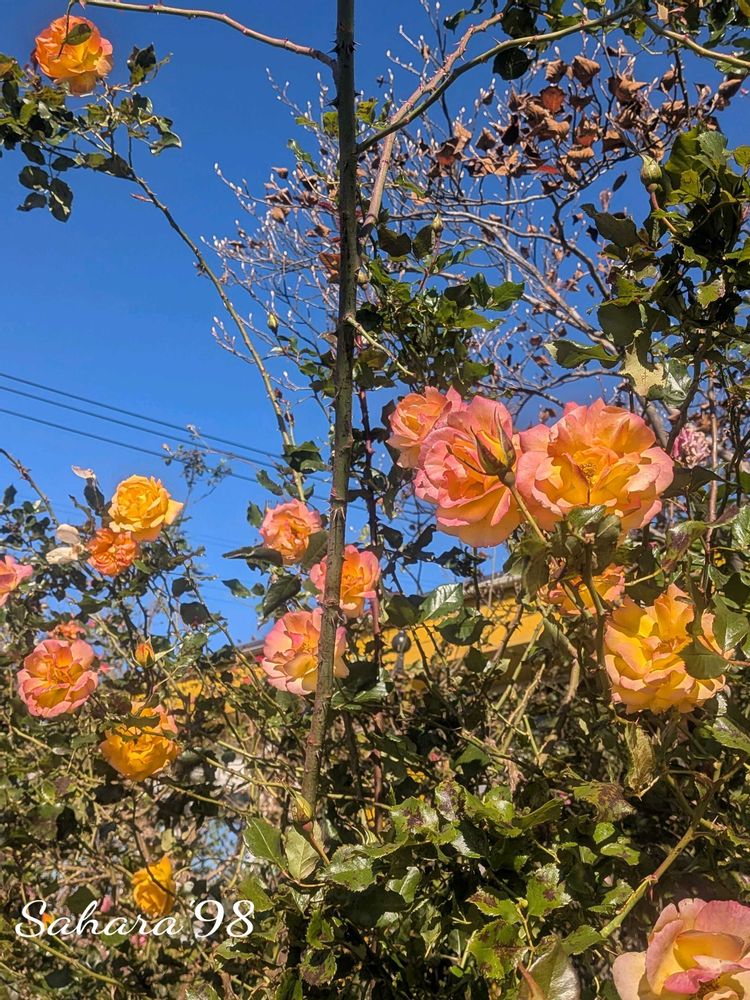 サハラ🌹は毎年シュートが出るので剪定誘引の時はほぼ全部外して手間だけれど新旧入れ直すので1日かかっちゃうんですけどね😅