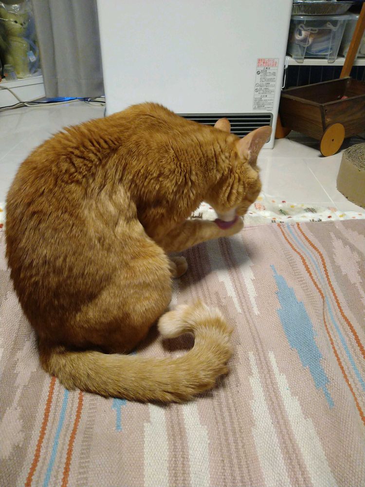 そして、温風が出てきたら早速移動して毛繕いをしています(笑)