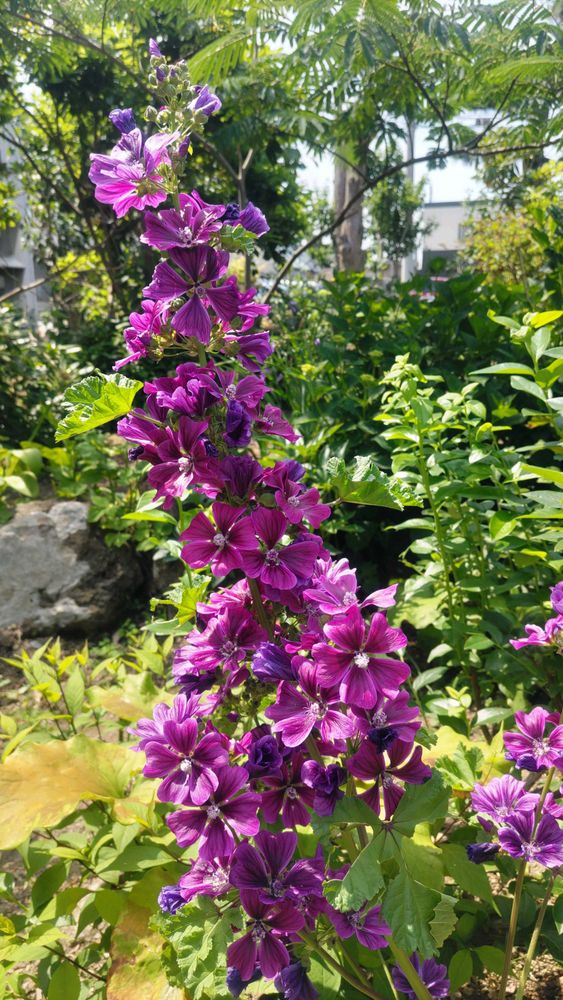 宿根して初夏に咲いたコモンマロウです🏵️花がたくさん咲きました