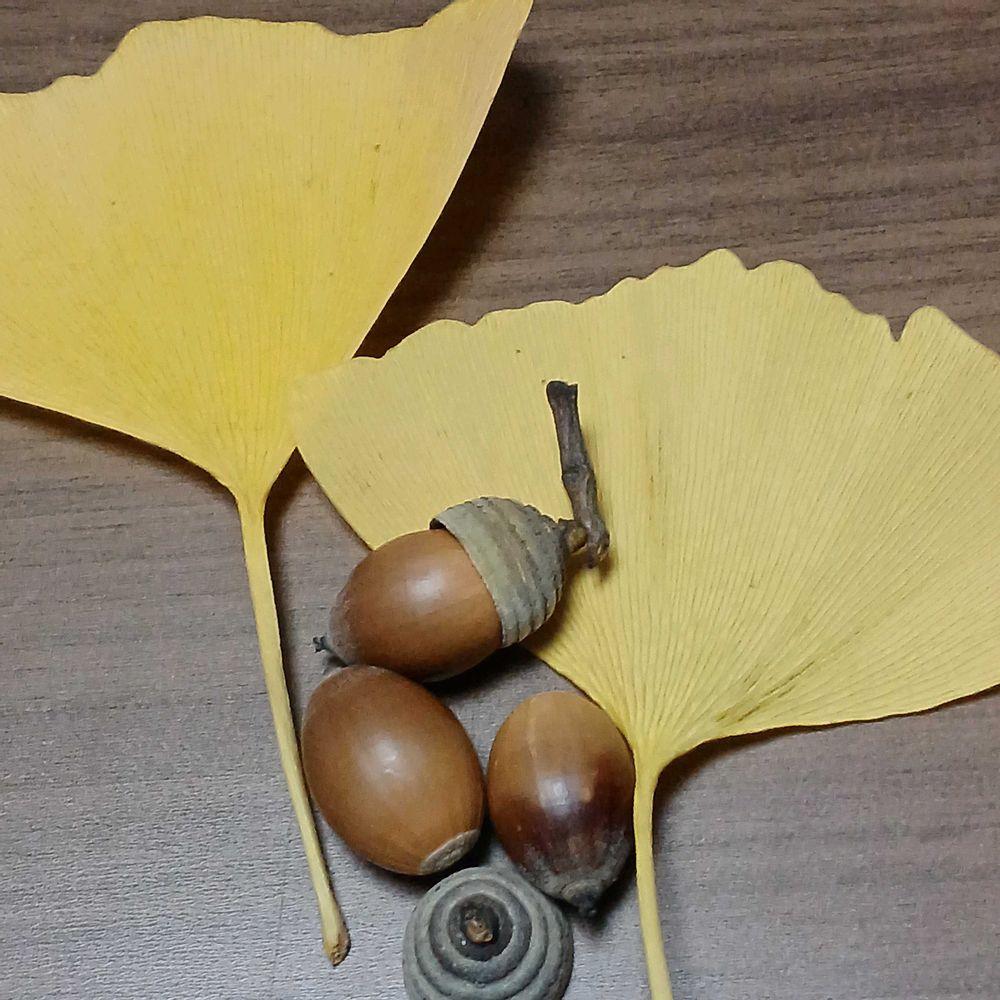 イチョウの葉とドングリ沢山落ちていたので拾って来ました😅