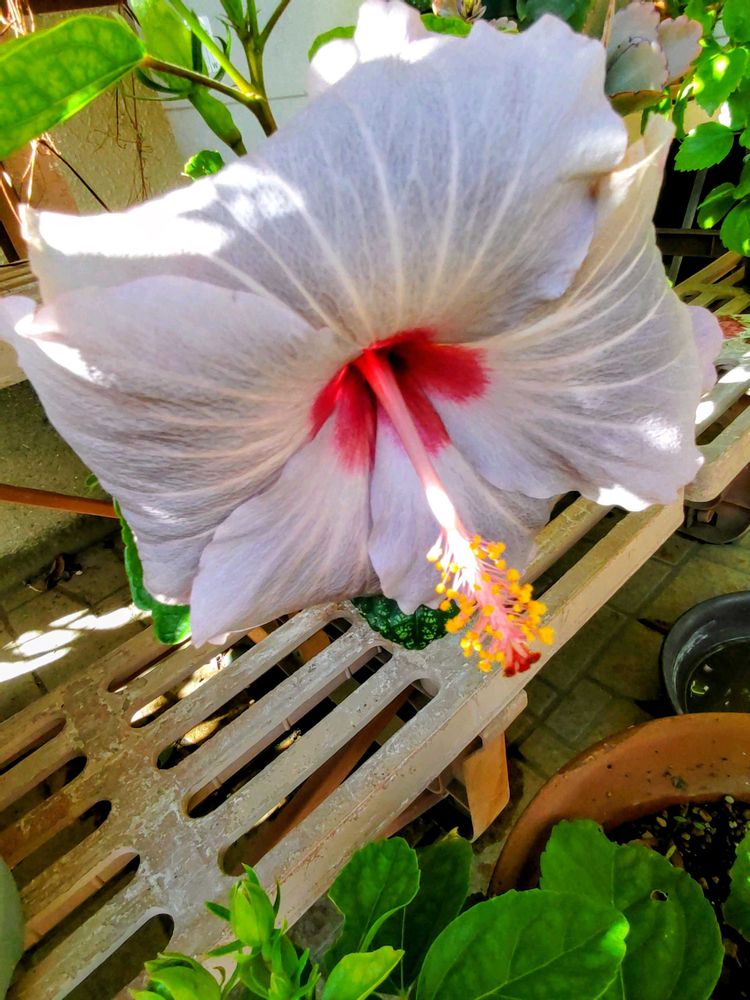 ハイビスカス ケイトが、昨日一昨日と寒かったので、今日の午後窓の日射しにパッと