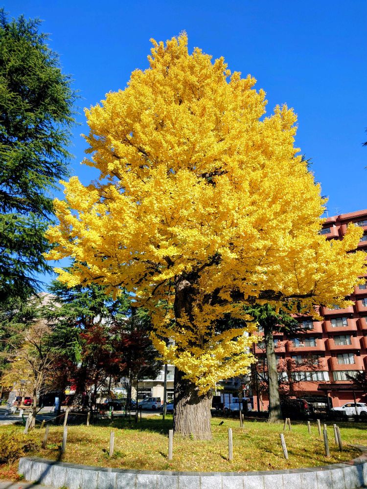 今日の昼頃、市内を散歩途中に見かけたイチョウ。