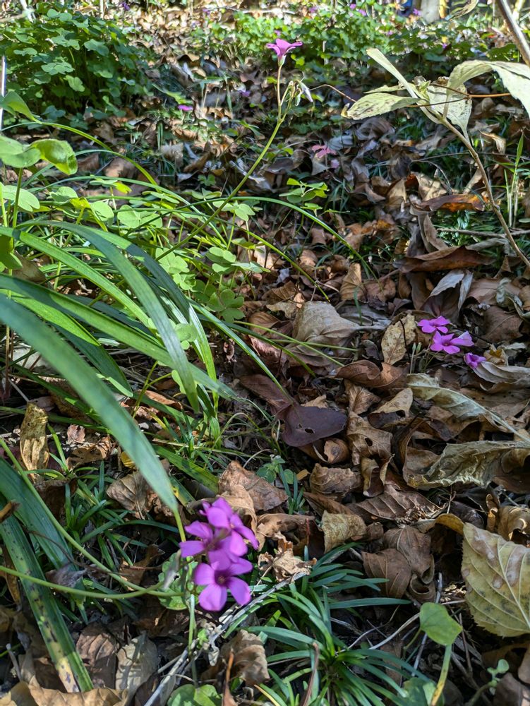 落ち葉🍂に埋もれながらも可憐に咲いていたムラサキカタバミ💜のお花が可愛いかったです😍💕