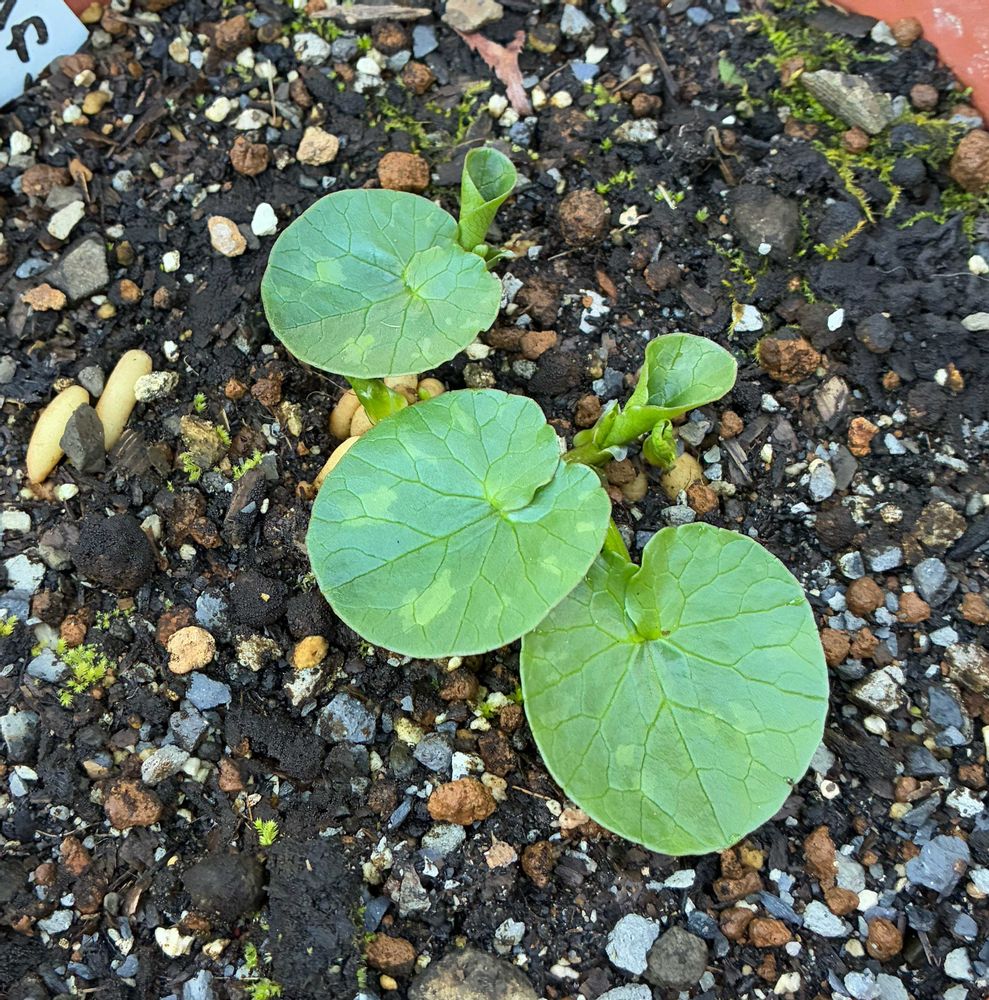 野菜苗をよく買う園芸屋さんで見つけて鉢植えにしておいたら、いつのまにか葉が展開していました