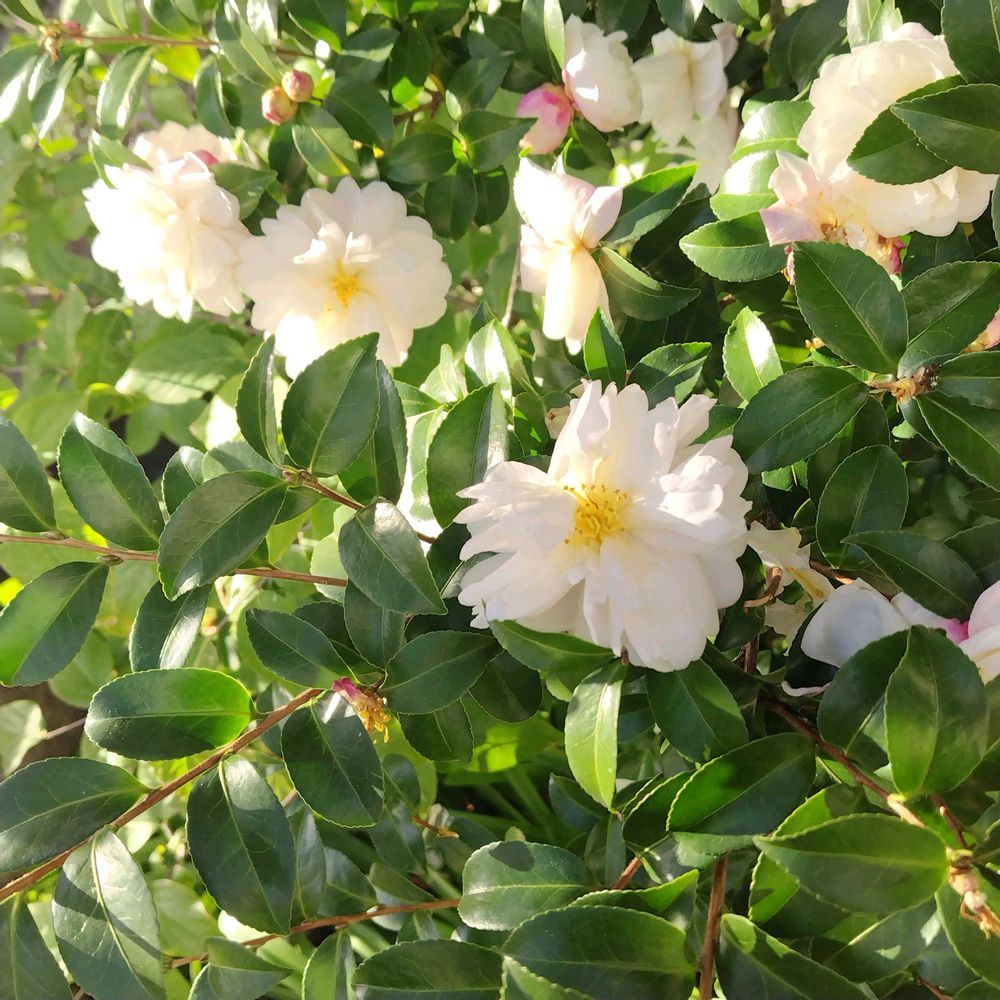 さん…サザンカの花がこんなに咲いてて…ビックリ😳😲!!😅🤭😘🤍🤍💮🤍🤍🌿…