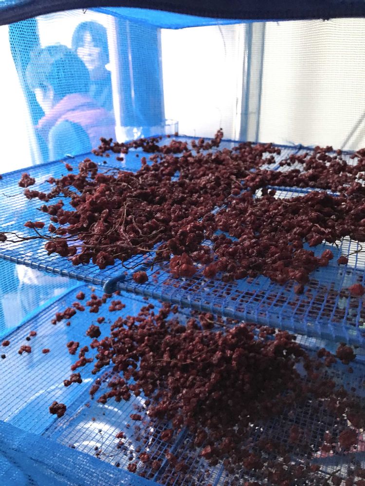 お友達の家の薪ストーブの上で「朝鮮五味子」の実を乾燥させていたの!