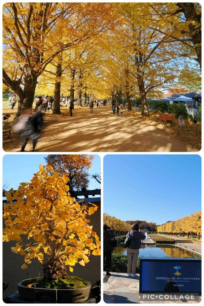 左下は、日本庭園盆栽園のイチョウの盆栽