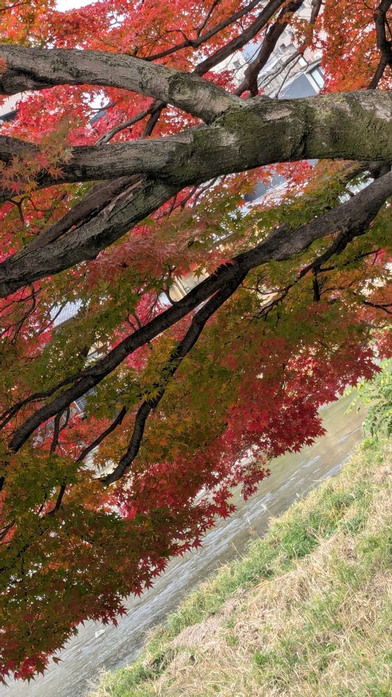 モミジ(紅葉),鴨川沿いを見下ろして…,あちらには夏は納涼床が並びます。の投稿画像