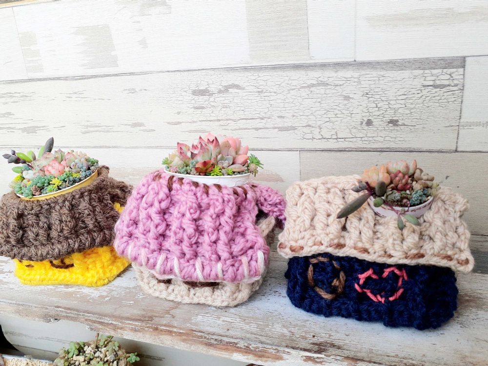 鉢カバーの編み編みでこの冬はあったかく過ごせるね