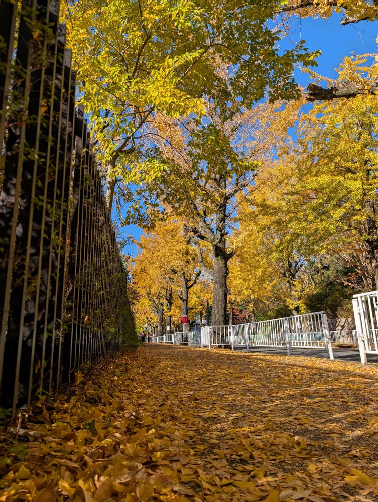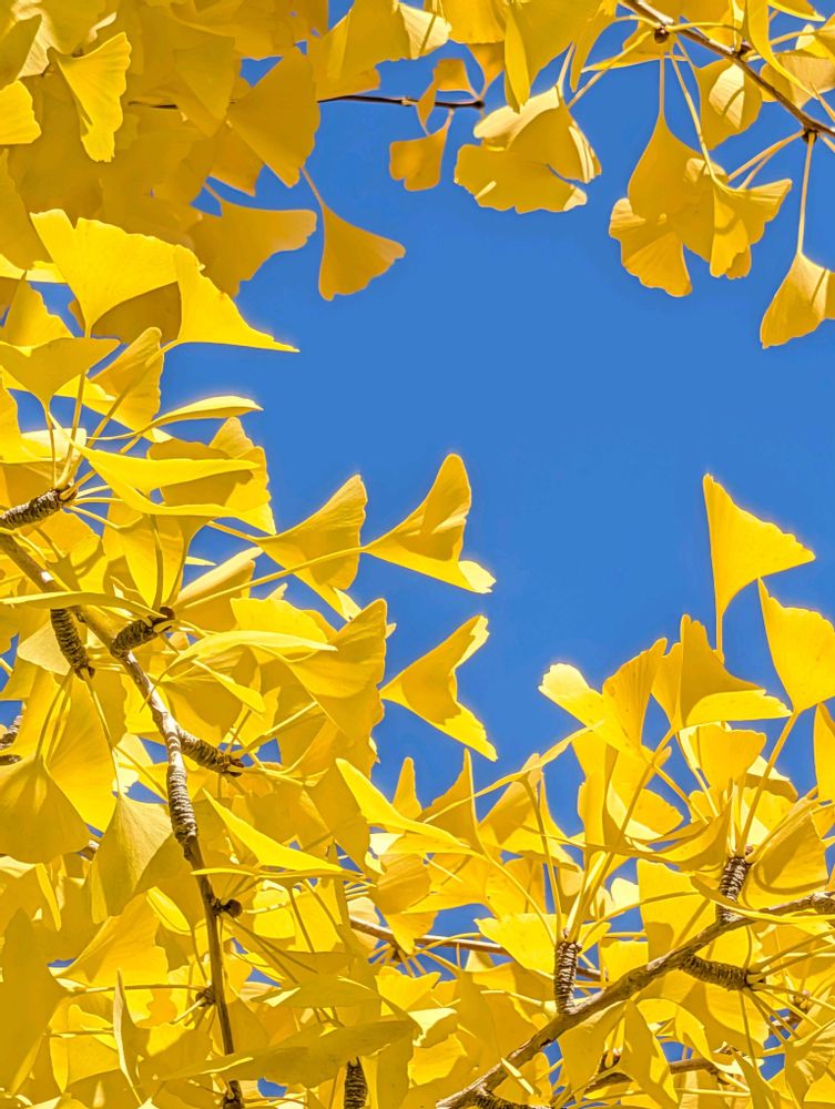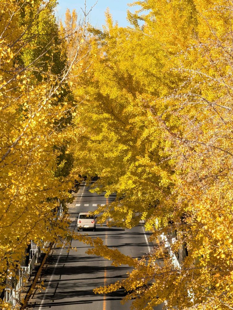 青空の中の銀杏並木、こんなにも素敵な風景があるのですね😌