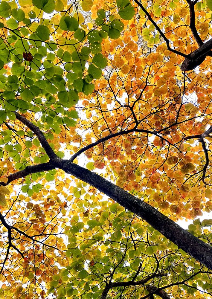 美しい空の下の黄葉と紅葉の日差しに包まれた、美しいお写真ですね🥰💕