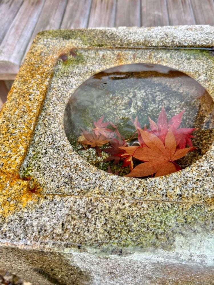 紅葉した葉と苔の緑と青空と風情のある建物それぞれが素敵に馴染んでいて、日本の良さを感じますねー