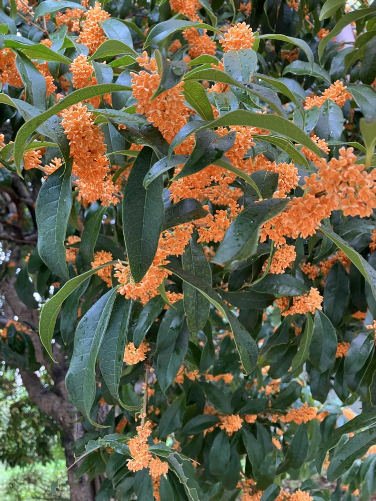 雨☂️の中、10月に散歩しました。甘い香りが強く漂っていました。鮮やかなオレンジに見惚れました✨