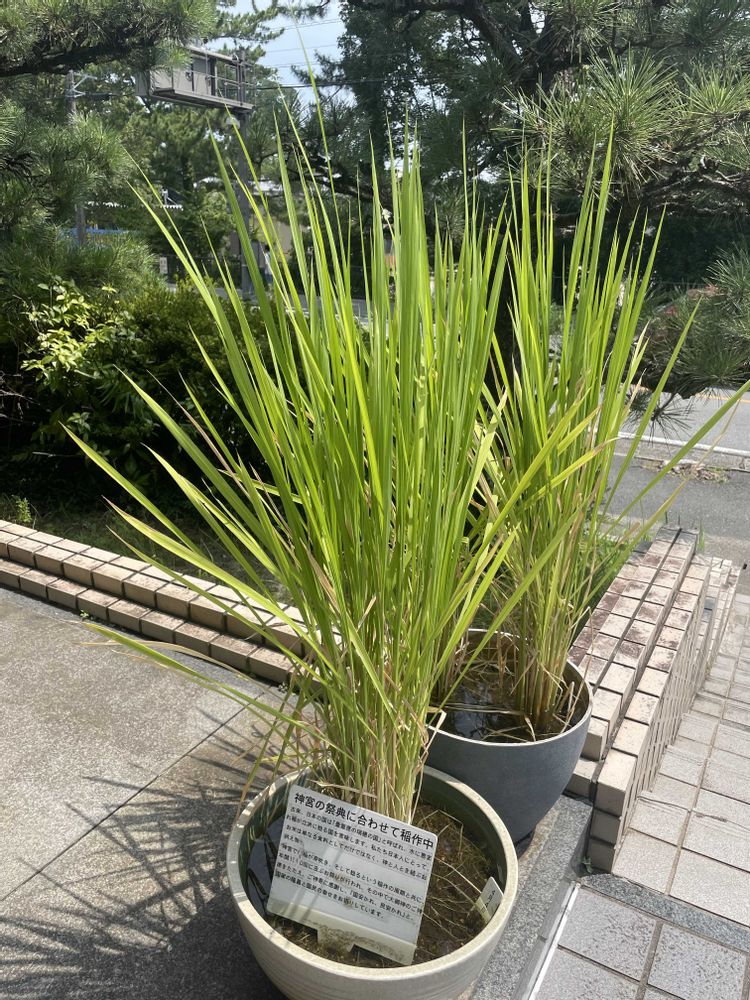 今年は植物園では案山子に、神宮や神社では鉢で稲育成中🌾のタイミングに出会いました。