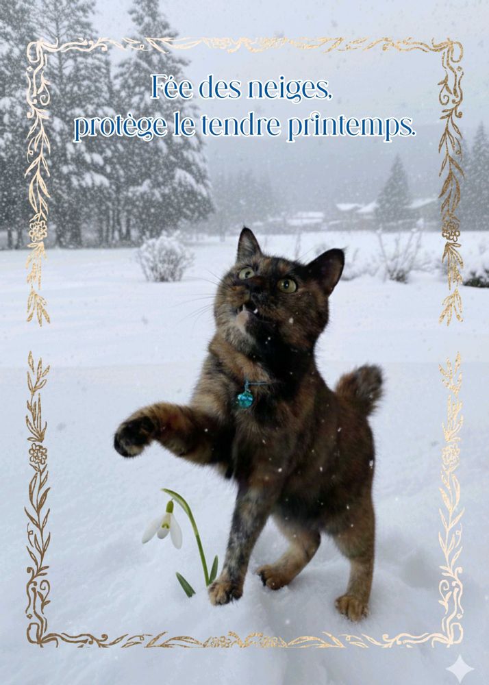 フランス語の文字は「雪の妖精さん、優しい春を守って」という意味です❄🧚♂️
