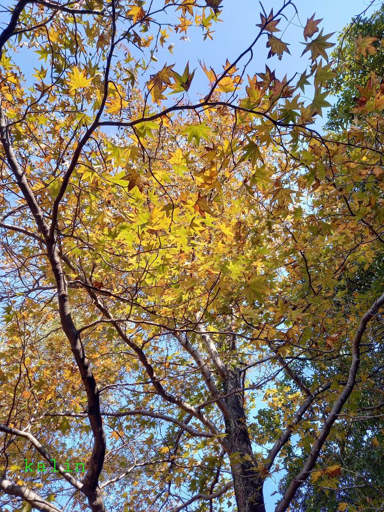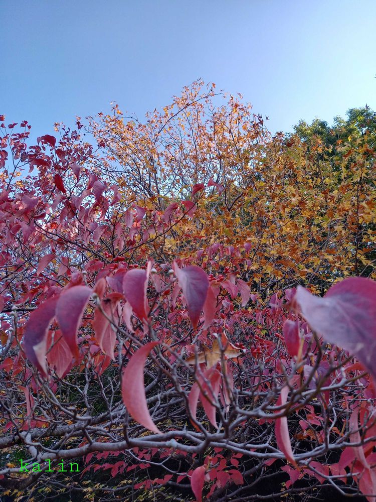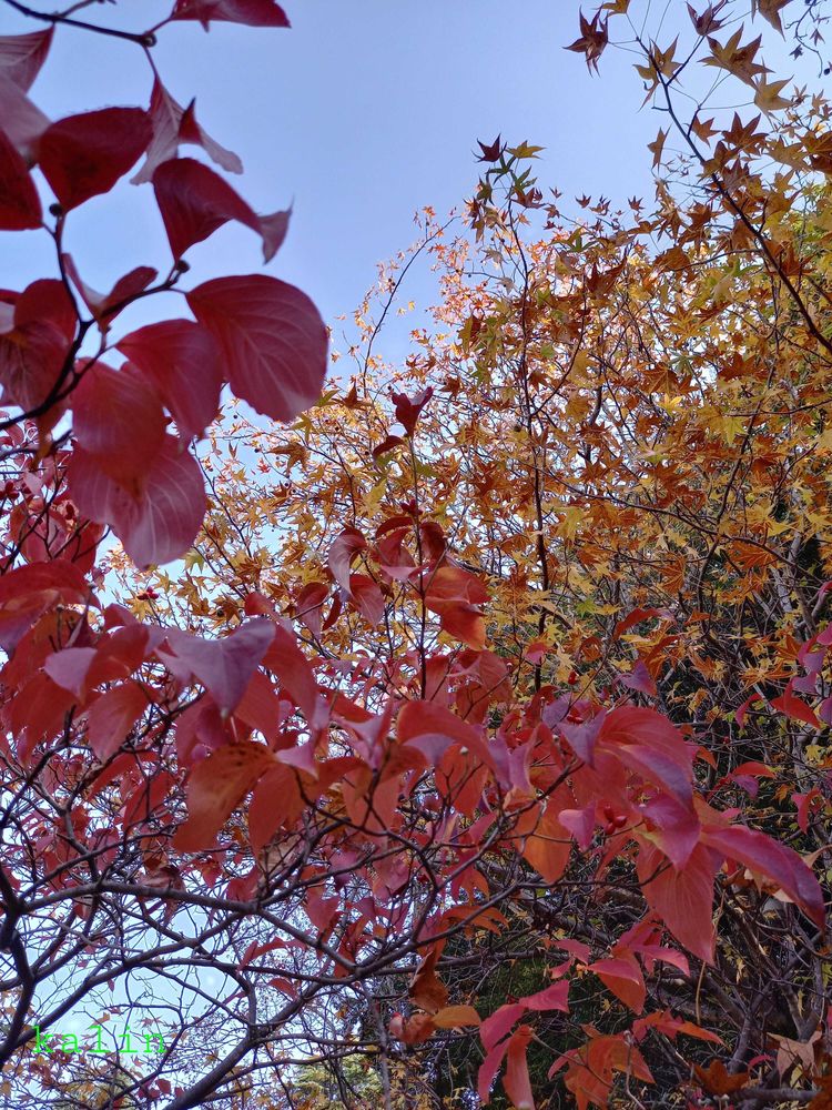 お散歩途中に紅葉していました。3.4.5枚目は少し遠くの公園の木々が紅葉していました。