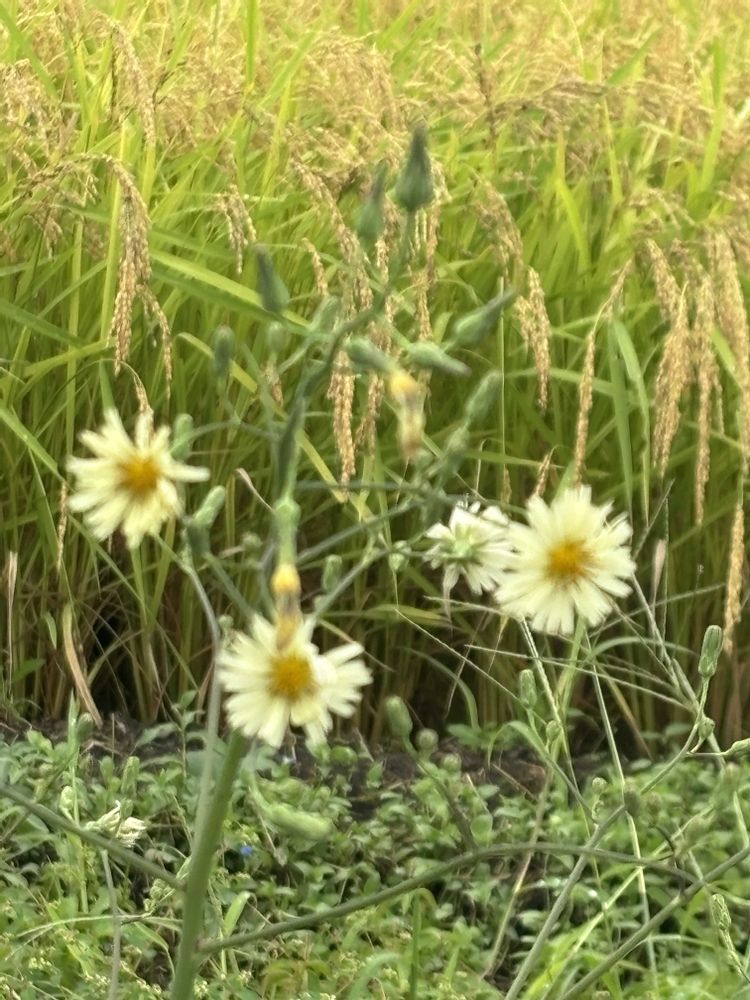 ③ 稲刈り直前の田んぼ、アキノノゲシと共に