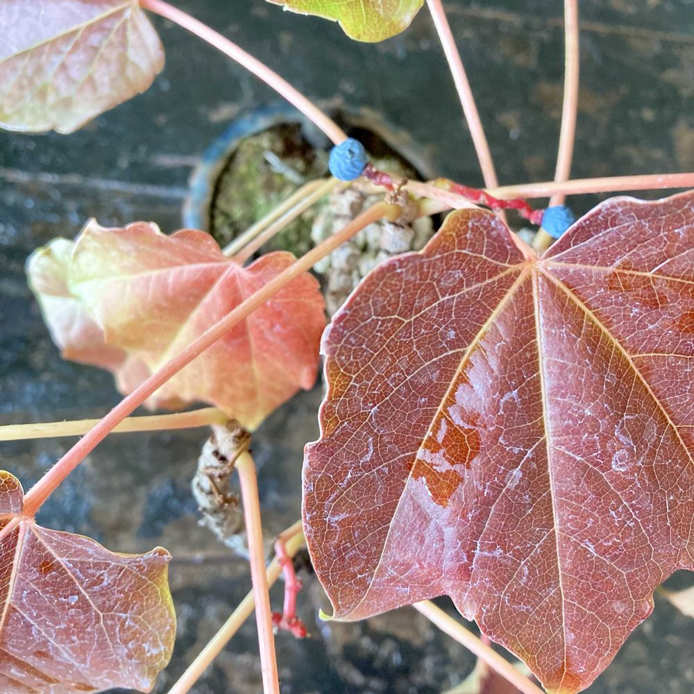 夏蔦(樹高13cm)が紅葉しました。この蔦は田舎の石垣で採取して15年くらい経ちます。