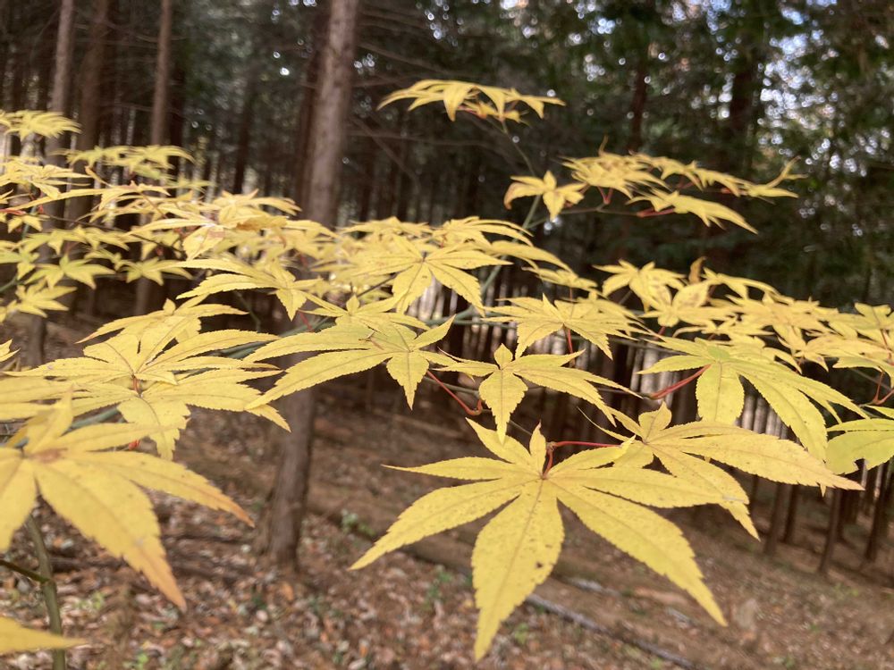 ② 檜林の中のモミジ