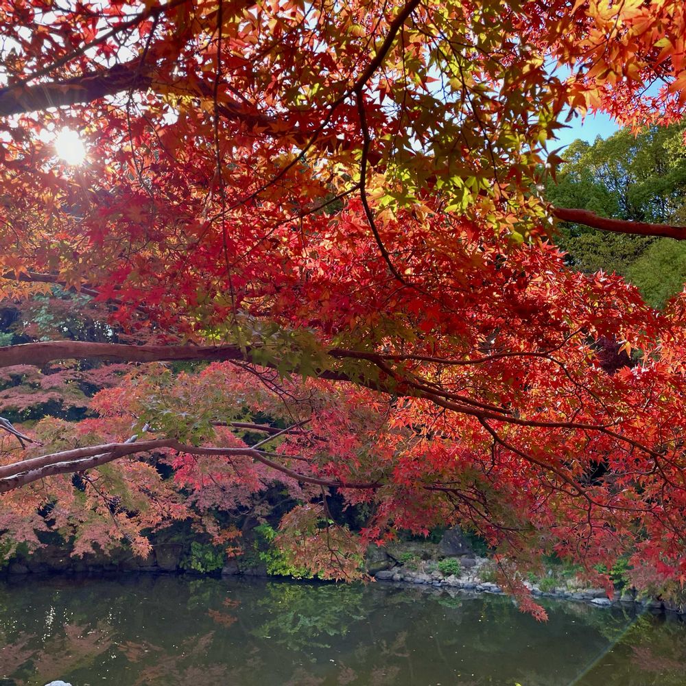 万博記念公園の紅葉まつり。陽に照らされ輝いてました✨