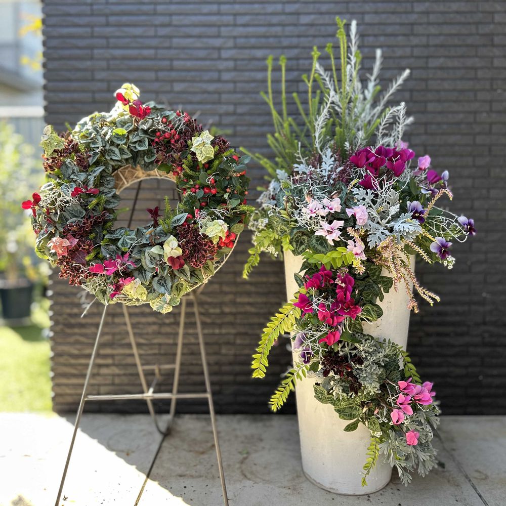 オンラインギャザリングレッスン、今月は大型のS字スリット鉢にシクラメンその他20株ほど植え込みました。動画で丁寧に説明がありますが四苦八苦大変だったの巻。先月作ったリースと並べて一旦の満足w。ちゃんと管理できれば春まで楽しめるとのことですが、せめて年明けまでは楽しみたい。