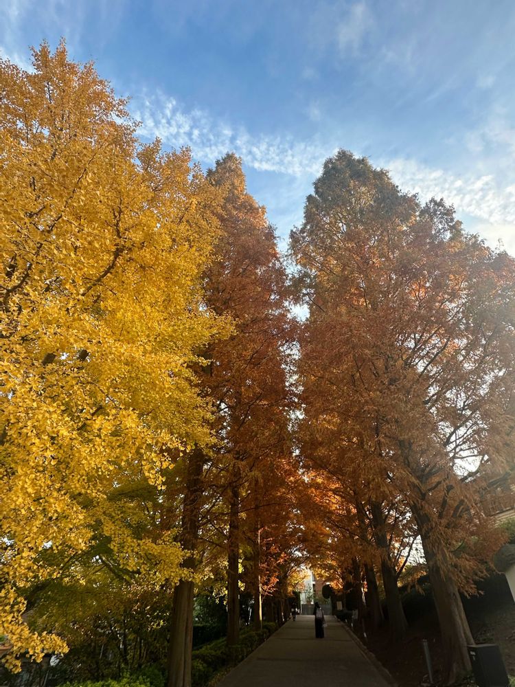 イチョウとメタセコイヤの紅葉がピークの美しさですねー🍀😌🍀