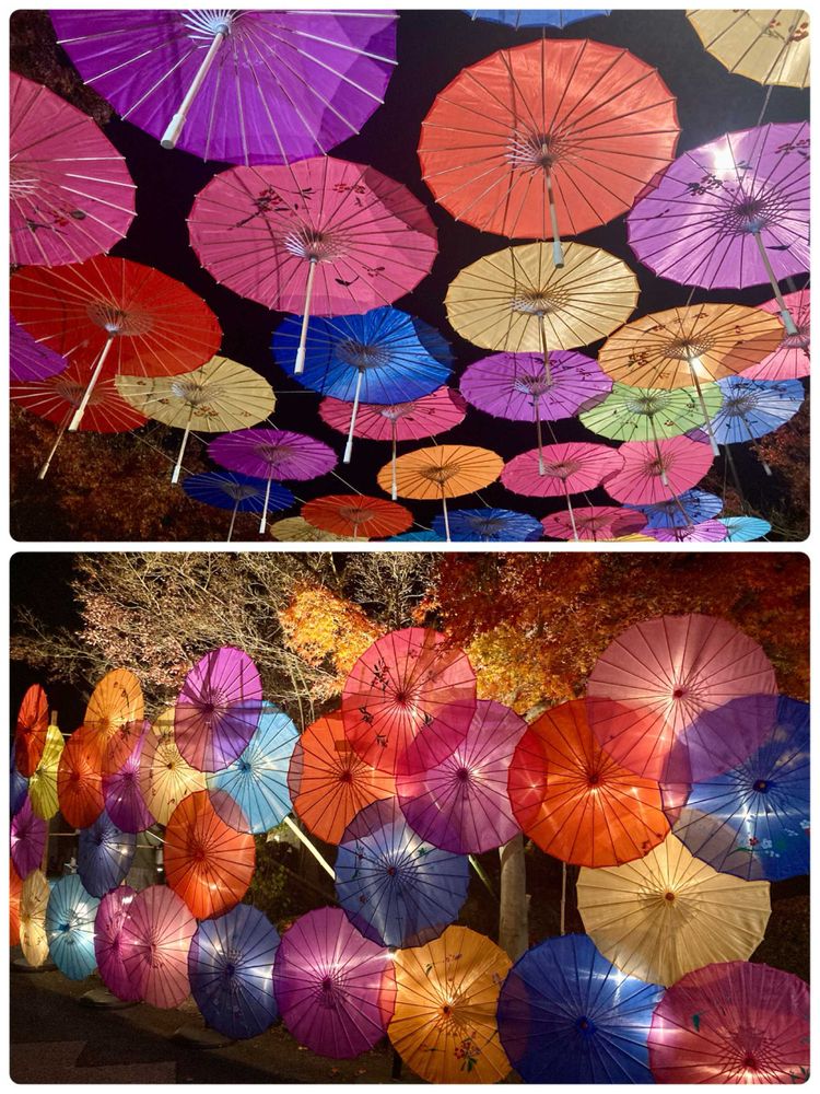 傘の演出も素敵なライトアップですね〜☂️✨🩷✨💚✨💜✨☂️