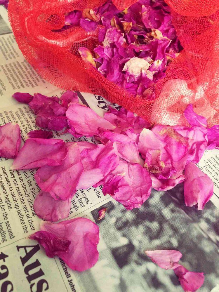 去年せっかく草木染めを習ったので、今年花びら咲き終わったバラの花びらをせっせと集めて乾かしています。