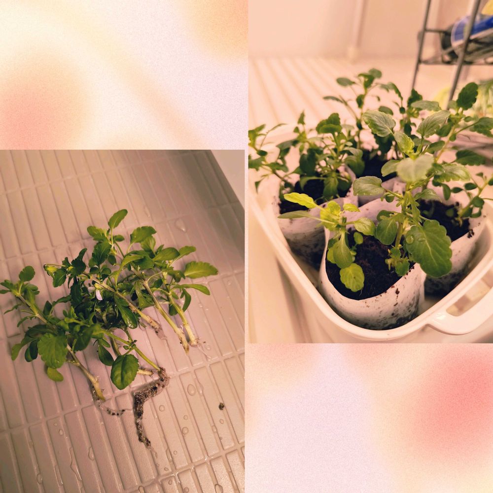 切り戻した挿し芽をフィオリーナをバーミキュライトにて発根を確認。