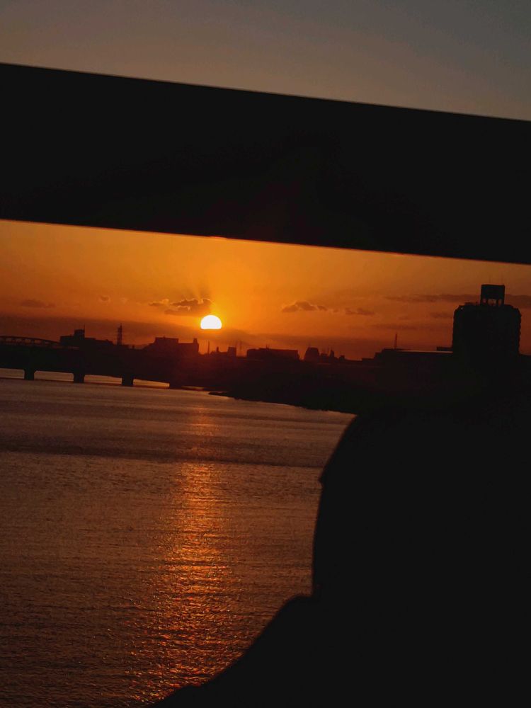 先日の和歌山へのバスツアー🚍️の帰り、淀川にかかる橋の上から見た夕陽🌅(バスの車窓から)で参加します。