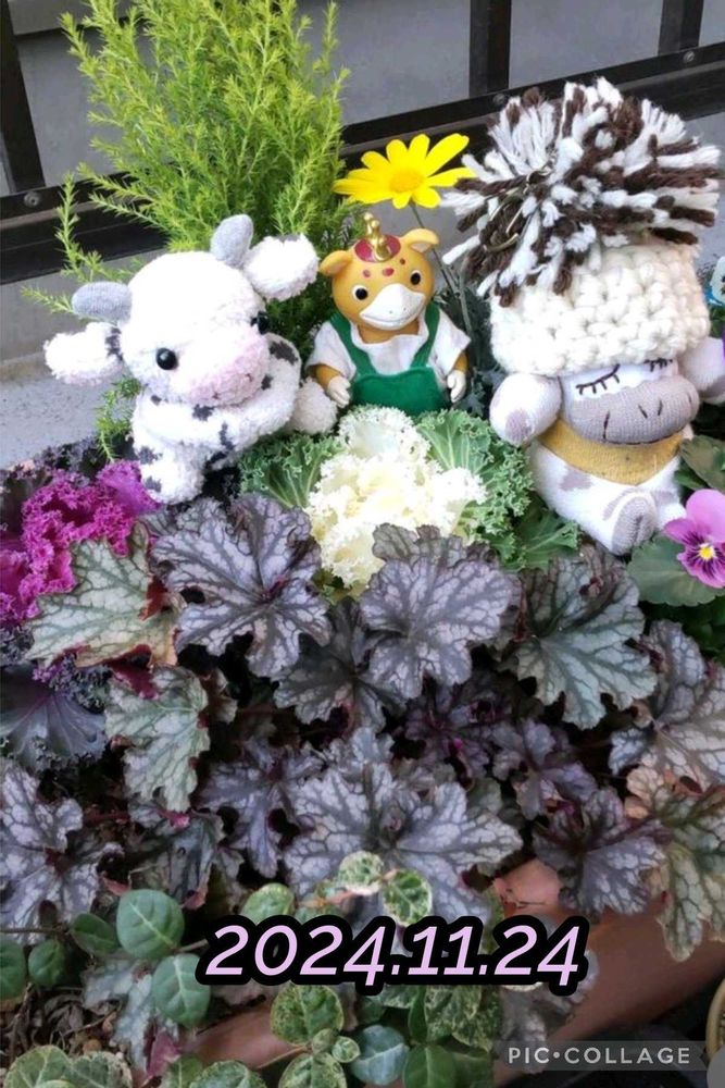 1枚目は、去年の今日投稿した、葉牡丹入りの寄せ植えです💕