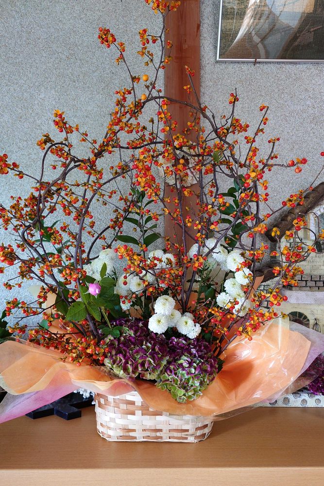 つるウメモドキの入った 生け花🧡