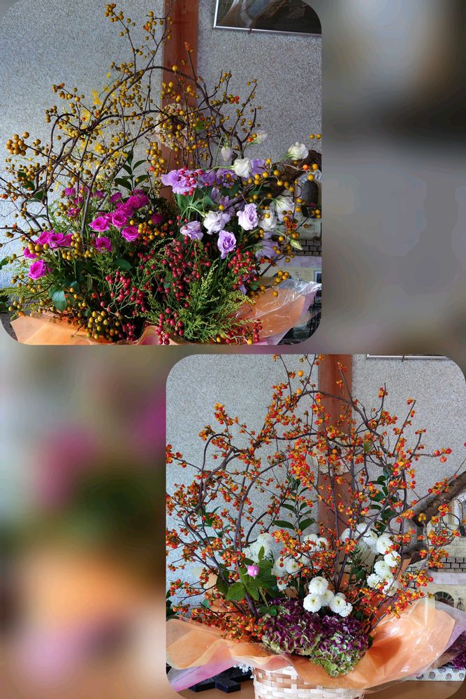 前より華やかさは抑え気味だけど、白い小菊がツルウメモドキをひきたてていて、私はこの方が好き🥰