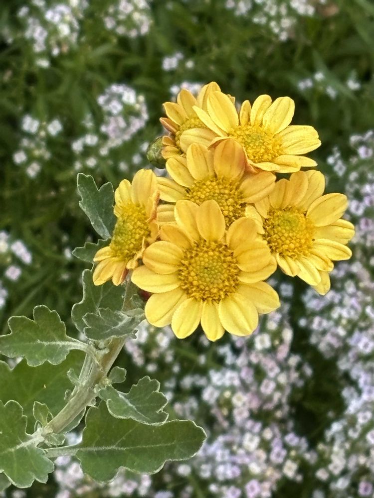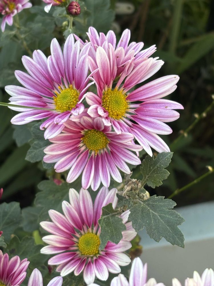 ①我が家で唯一、黄色の菊。遅めの開花です。