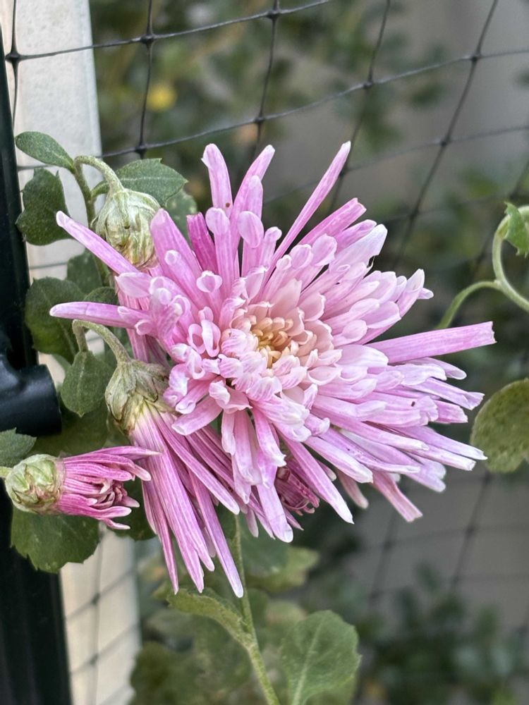 ②ピンクのコロンとした可愛い菊。こちらも遅めの開花。