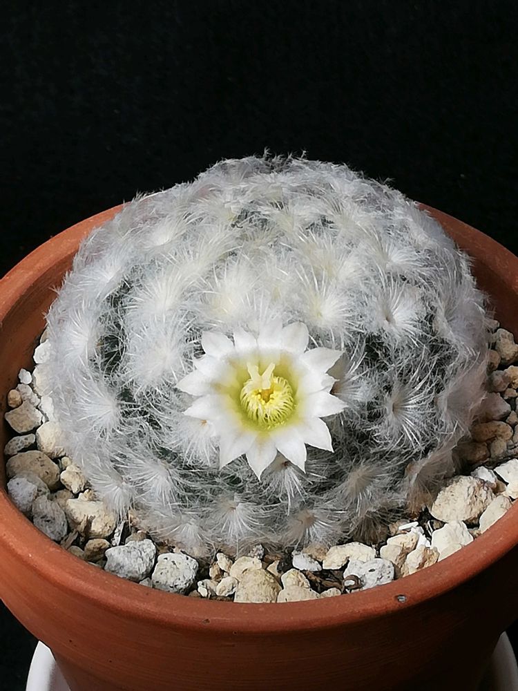 ①去年8月にダイソーで税込み110円で購入したマミラリア白星が開花しました(初花)